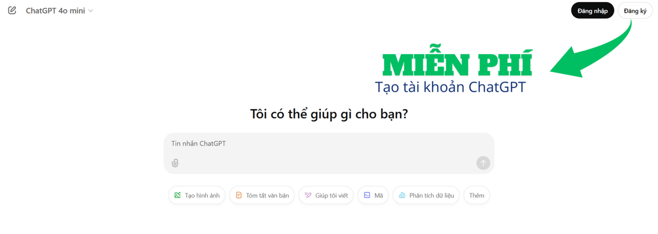 Đăng ký tài khoản: Truy cập Chatgpt.com để tạo tài khoản miễn phí. Nếu bạn muốn làm việc mọi lúc mọi nơi, hãy tải ứng dụng ChatGPT trên điện thoại của bạn.