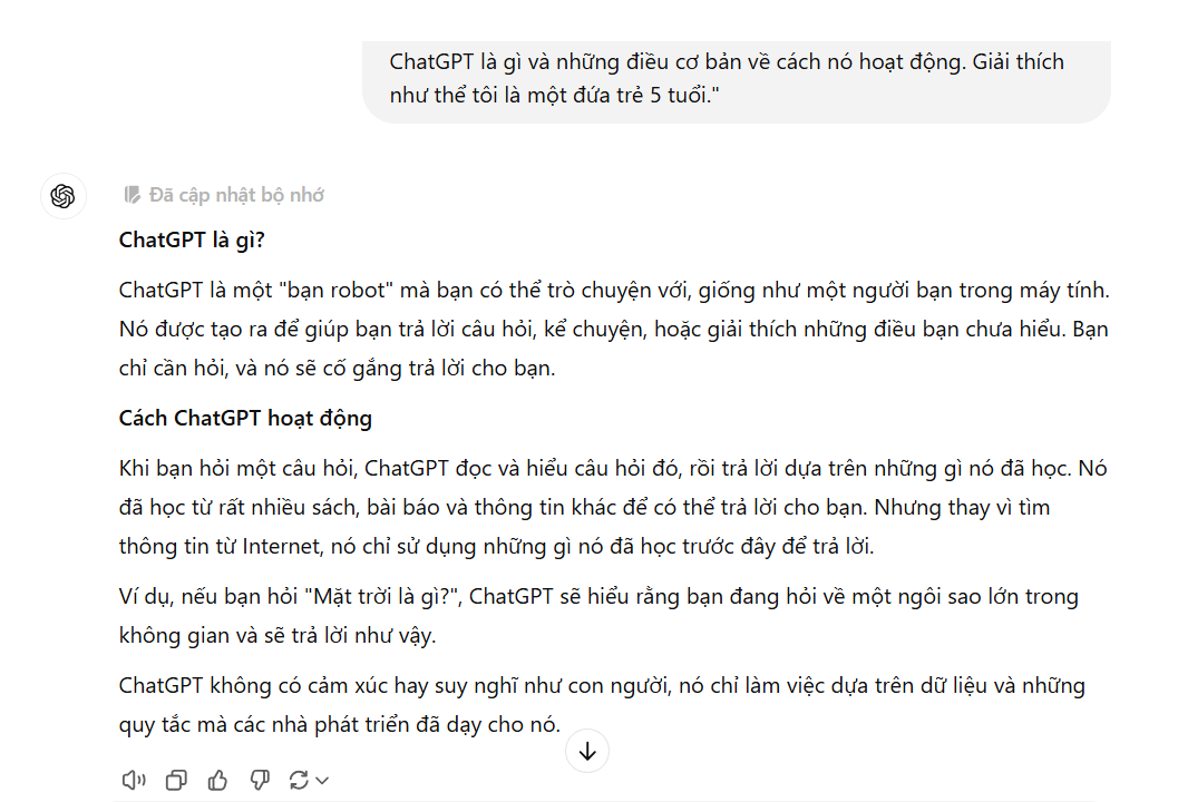 ChatGPT là gì và những điều cơ bản về cách nó hoạt động. Giải thích như thể tôi là một đứa trẻ 5 tuổi."Phản hồi của ChatGPT ở mô hình 4o mini