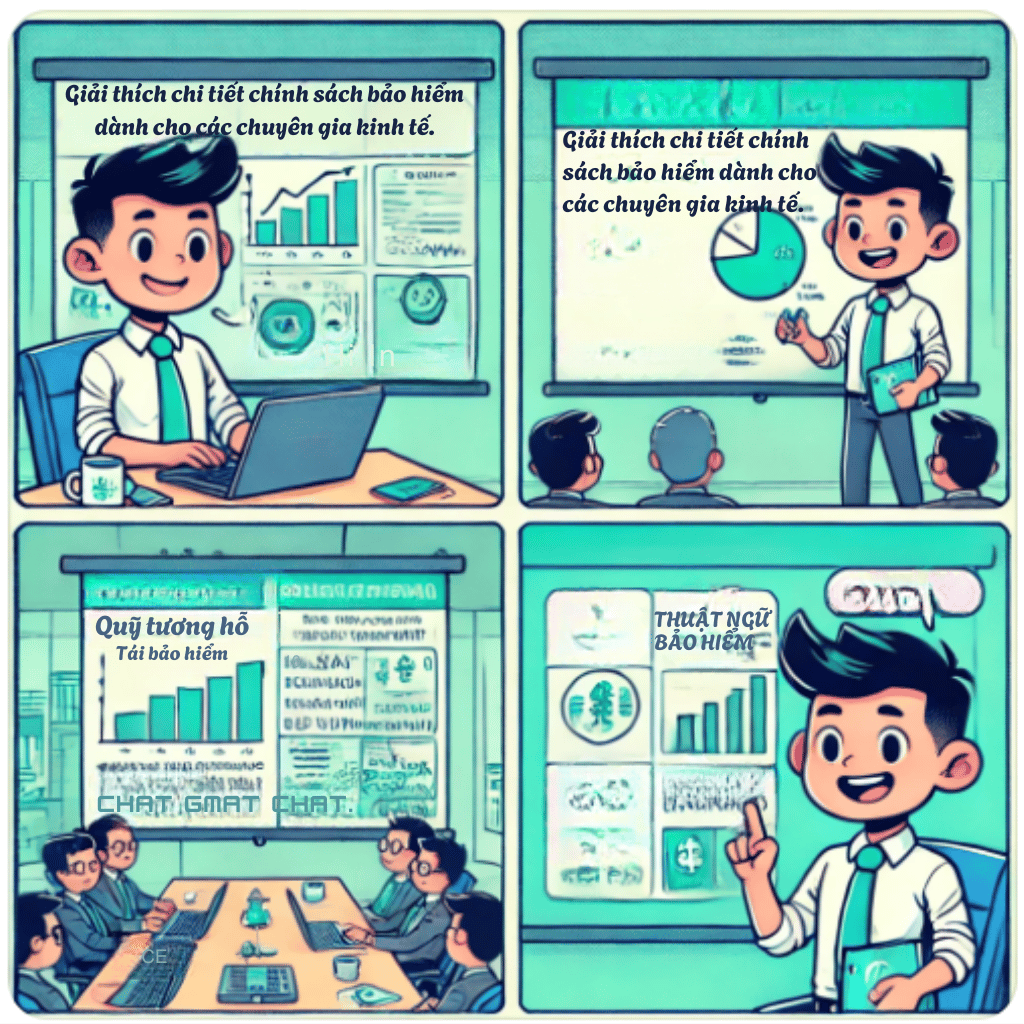 Anh Phong, chuyên viên tài chính, được sếp yêu cầu chuẩn bị một bản thuyết trình giải thích cơ chế bảo hiểm cho các đối tác. Anh nhập prompt: "Giải thích chi tiết chính sách bảo hiểm dành cho các chuyên gia kinh tế."