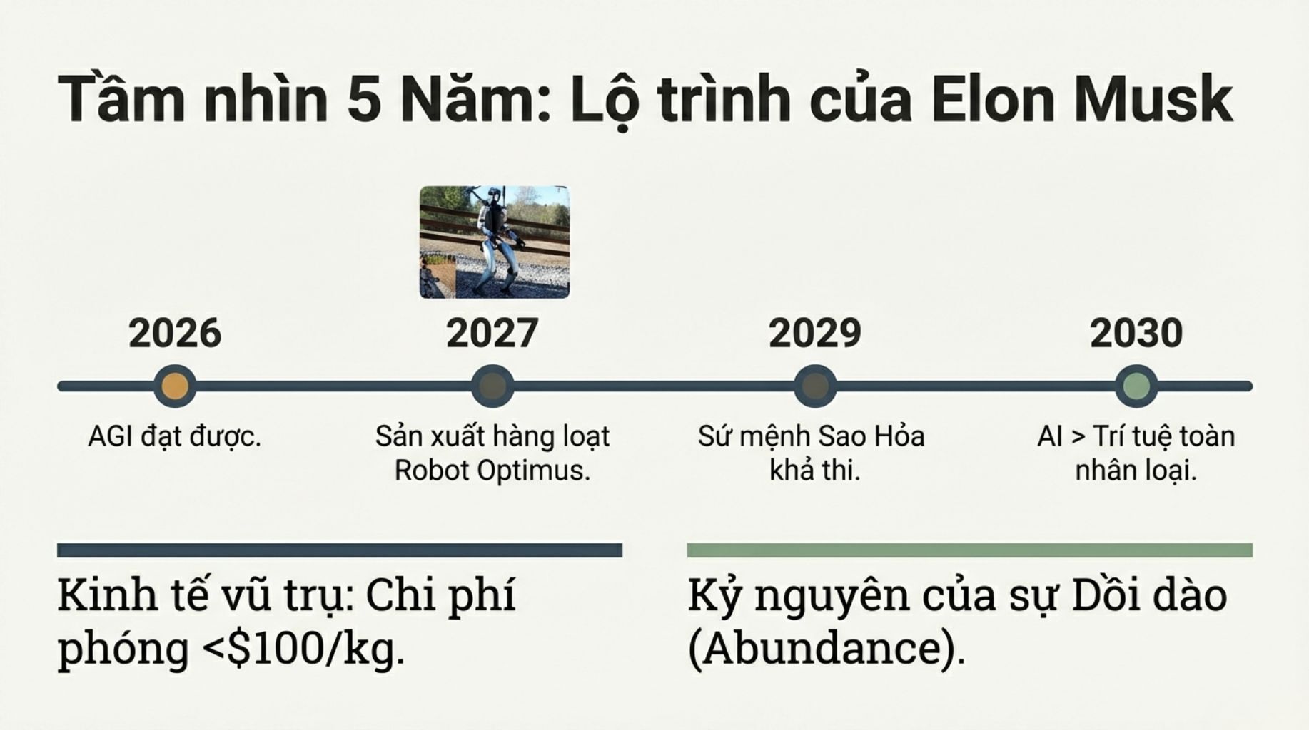 Elon Musk dự báo AGI sẽ xuất hiện vào năm 2026 - chỉ còn 1 năm nữa thôi! Và đến năm 2040, có thể có hơn 10 tỷ robot nhân hình.