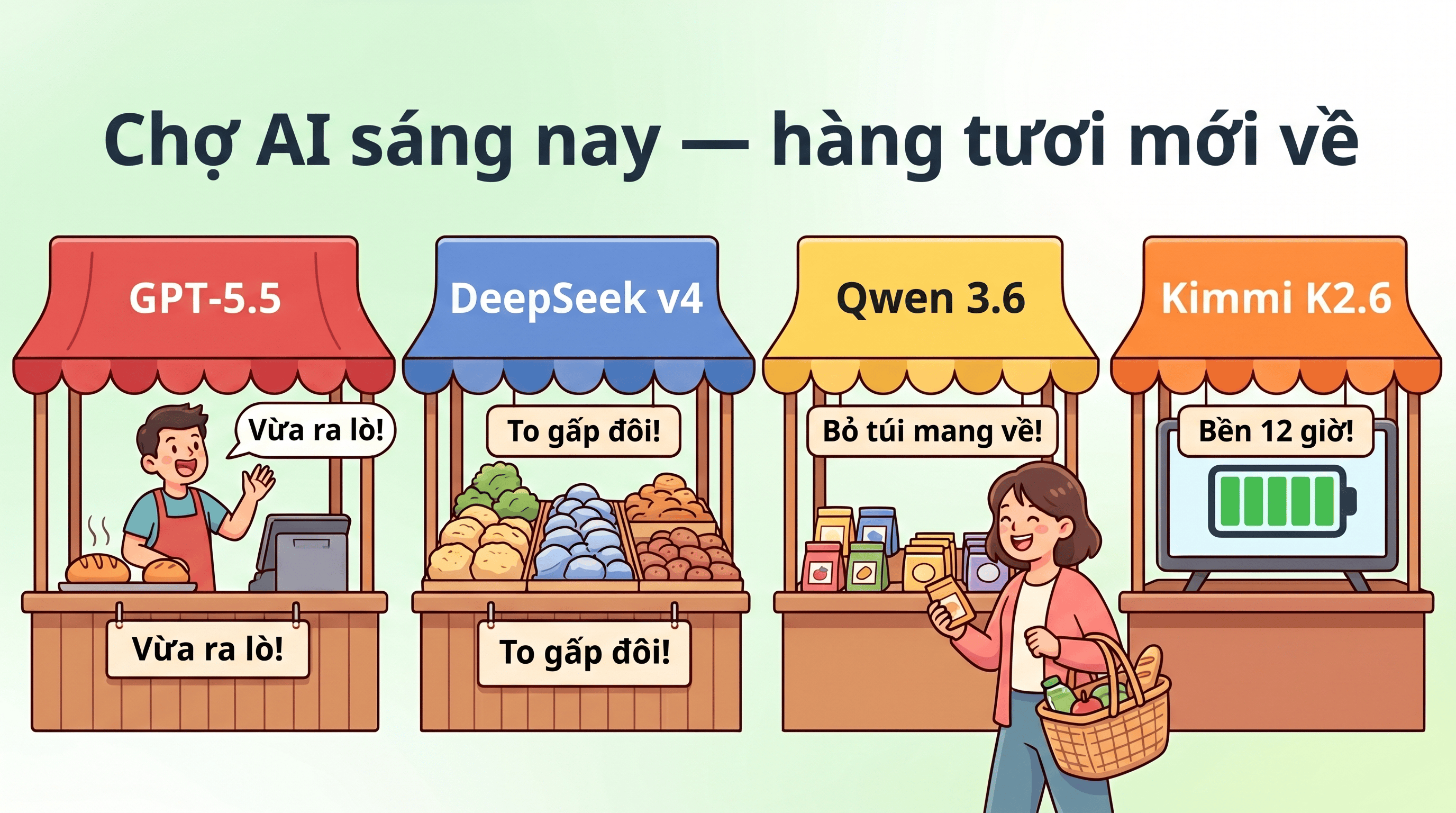 Tuần này có 3 mô hình AI lớn ra mắt gần như cùng lúc. Giống chợ sáng — hàng tươi về mỗi ngày, ai đi sớm người đó được chọn trước.