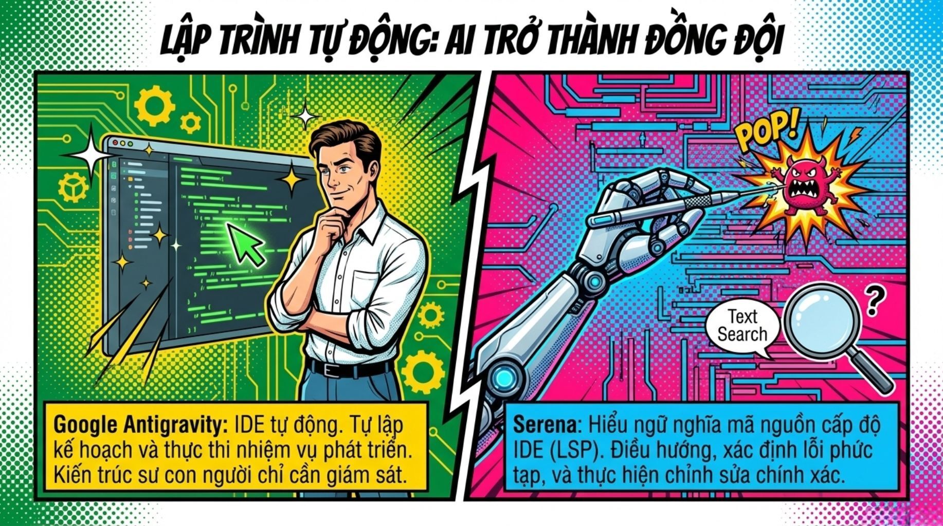 2. Serena: Serena là bộ công cụ mã nguồn mở giúp các LLM hiểu mã nguồn ở mức độ sâu hơn. Nó sử dụng Language Server Protocol (LSP) để cung cấp khả năng hiểu ngữ nghĩa mã cấp độ IDE (IDE-grade semantic code intelligence). Điều này cho phép AI điều hướng cơ sở mã, xác định lỗi phức tạp và thực hiện các chỉnh sửa chính xác, chứ không chỉ là tìm kiếm văn bản.