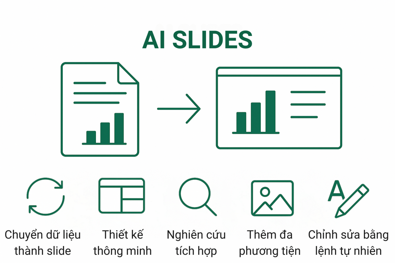 Ví dụ: "Tạo bài thuyết trình 10 slide về nền kinh tế số Việt Nam năm 2025, với biểu đồ tăng trưởng và so sánh khu vực"