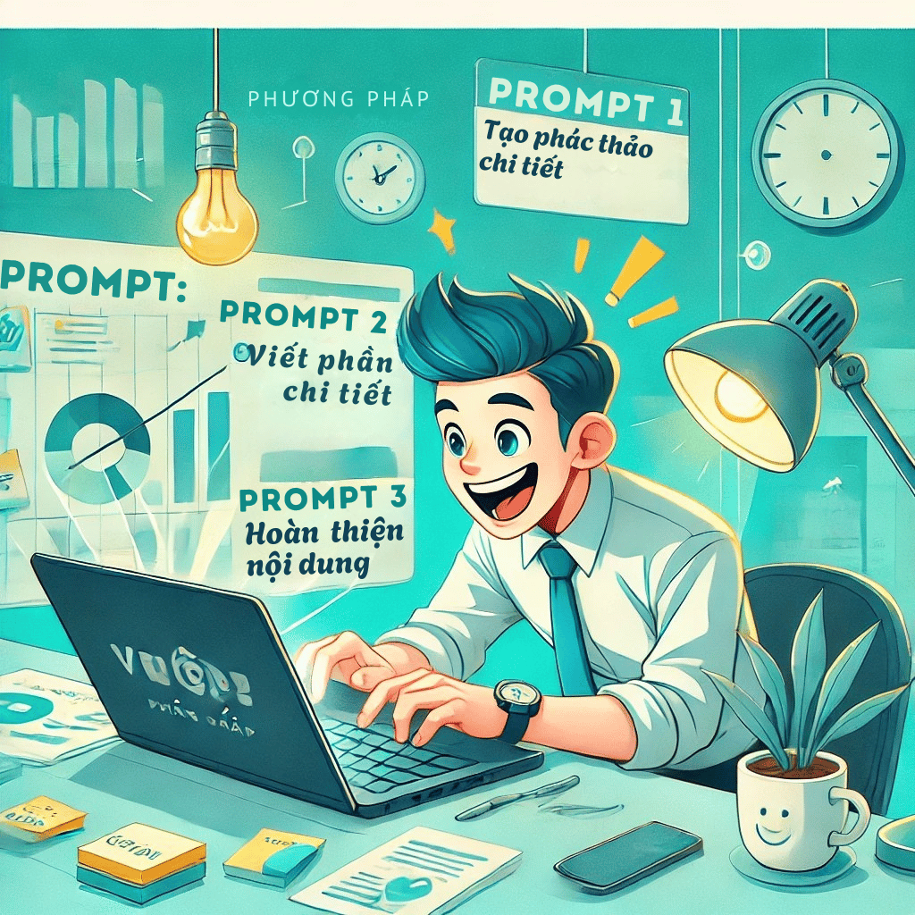 May mắn thay, Linh nhớ ra ChatGPT - trợ lý ảo đã giúp cô nhiều lần trước đây. Cô quyết định thử một kỹ thuật mới: phác thảo và prompt tăng dần tự động. Kết quả? Bài viết được hoàn thành một cách dễ dàng, logic và thậm chí còn gây ấn tượng mạnh với sếp.