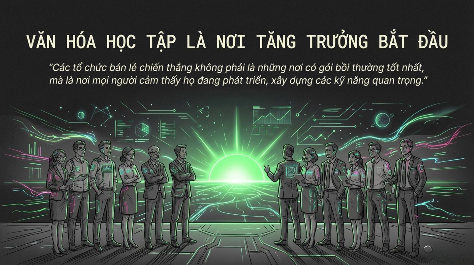 Hệ thống đo lường và phản hồi liên tục: Thiết lập một vòng lặp phản hồi liên tục. Thu thập ý kiến của nhân viên về các chương trình đào tạo, theo dõi các chỉ số kinh doanh một cách chặt chẽ và sử dụng dữ liệu đó để liên tục cải tiến và tối ưu hóa nội dung cũng như phương pháp đào tạo.
